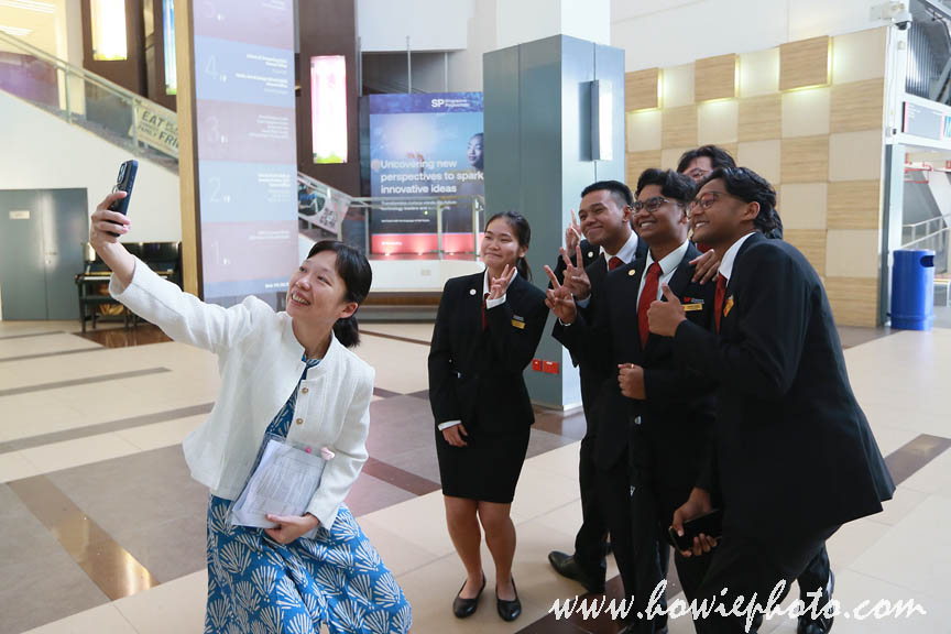 12 Nov 2025 MOS for Digital Development and Information Jasmin Lau takes wefie with students at the end of SG Perspectives Dialogue at Singapore Poly